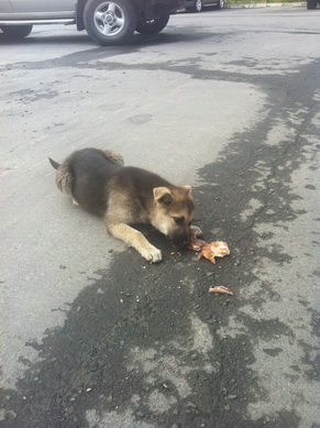 Эта история о собаке, существующей на перевале, по дороге в п. Армань. Существующей, потому что у нее отказали задние лапы. Кажется, здесь уже было описано это происшествие, но когда я сама увидела этого пса, я поняла, что не могу так этого оставить.