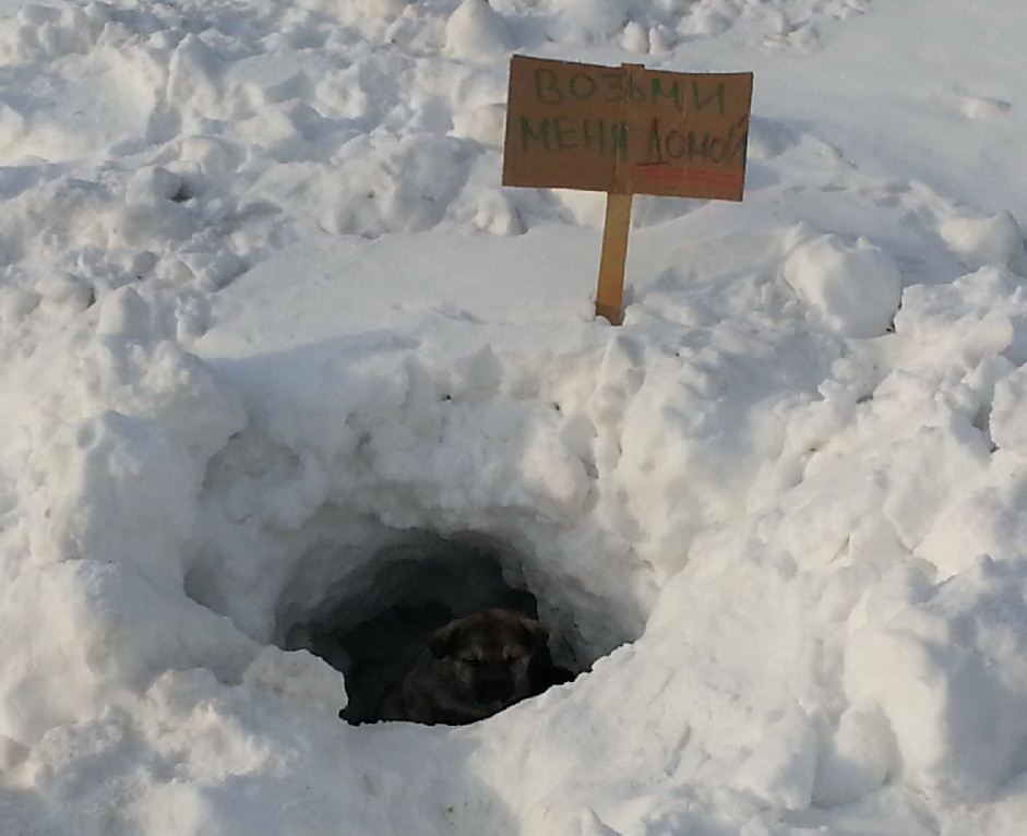 жесть, щенки живут в снежной норе