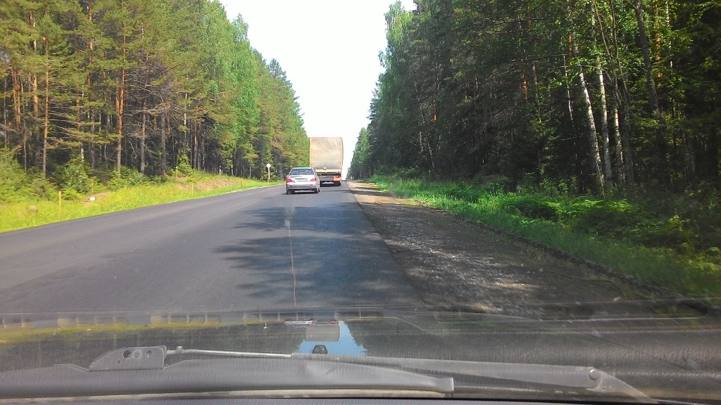 Нажмите для просмотра прикрепленного файлаЗаправкаНажмите для просмотра прикрепленного файлаНажмите для просмотра прикрепленного файлаНажмите для просмотра прикрепленного файлаК сожалению, все хорошее быстро заканчивается. Дальше переезд через уральские горы. Тут все мои положительные эмоции обнулились. Участок очень сложный. Дорога почти всегда двухполосная, частые повороты, очень плотный трафик, то подъемы, то спуски. Плюс ко всему еще и дождь пошел. В таких условиях фуры сильно тормозят движение, иногда до полной остановки, и вместе с туристическими автобусами сбиваются в длинные колонны, которые очень тяжело обгонять. У моего автомобиля динамика совсем чуть-чуть лучше динамики разгона груженой фуры, потому мне приходилось особенно тяжко. А еще на этом участке пути я пару раз пожалел, что у меня праворульный авто. Потому действовал следующим образом: ждал пока у водителя позади меня кончится терпение и он начнет обгон, я тут же выскакиваю следом за ним и мониторю. Если все удачно и встречка свободна, продолжаю обгон. В один из таких моментов возникла неприятная для меня ситуация.