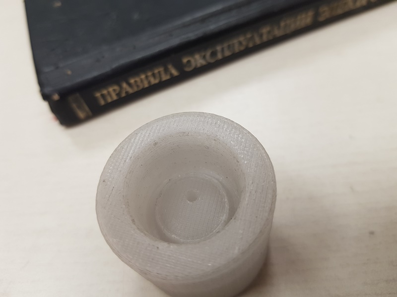 Есть модели ручек...такие, сякие и вообще всякие, но как-то не нашлось такой, которая крепится под шнурок... По большому счёту пофиг, деталь простая даже для меня, ламера в моделировании...Сел за ноут, потыкал кнопки, повозюкал мышкой и деталь (две) пошла в печать. Сорок восемь минут и принтер позвонил,что всё готово...Детальки встали на место ничуть не хуже родных...
