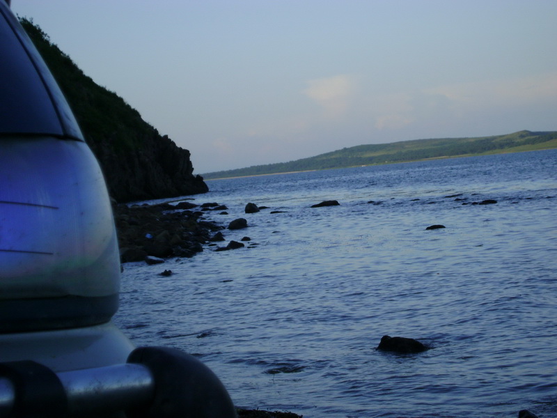День девятый 28 июля вторник, утро, все как обычно, гав, дверь, пинок (улица, фонарь, аптека). В 09,30(Маг) старт, по пути у бабушки купили клубники, в общем, утро удалось. Через 2 часа были в Уссурийске. Уссурийск моя родина, здесь много родственников, поэтому решили задержаться. Съездили на кладбище навестить родных, посмотрели на дом, где я вырос, записались на СТО посмотреть машину и поехали к брату. Вечером немного посидели, поговорили. Что бы упредить улыбки уточняю, что мой брат не пьет в принципе, поэтому обошлись без спиртного. Утром поехал на СТО сделать ТО автобусу. Заехал на подъемник в 09,00 утра (время местное), 15 минут диагностика. Резюме: сломана пружина, люфт в рулевых тягах, необходимо подтянуть подшипники передних ступиц. Дают авто с водителем и отправляют за запчастями. Отправляют меня не потому, что сами не могут, а что бы ни подумал, что они обманывают. Доехали до рынка, подхожу к продавцу, он спрашивает, какие проблемы, показываю список необходимого. Говорит, подождите пять минут и уходит, через пять минут все запчасти в упаковке (оригинал) были у меня, дополнительно купил японские фильтра и назад на СТО. Захожу и чуть не падаю в обморок, вся ходовка разобрана до винтика, т.е. ступицы сняты, подшипники разобраны, мост опущен, рулевые тяги раскручены. Полное ощущение, что попал на длительный ремонт и большие деньги. Подошел шеф СТО, предложил отдохнуть в кресле, выпить кофе и посмотреть телевизор. Не буду описывать, как профессионально они все это делали. Ни одного лишнего движения, короче говоря, через три часа тридцать семь минут я поехал делать развал схождение. Сумма ремонта составила 3500 руб. за тех обслуживание, 200 руб. замена масла и 500 руб. развал схождение (это не реклама, если кому  то надо сообщу адрес). Заехали в кафе (китайская кухня, одна порция на двоих и то много) пообедали, накупили всяких вкусняшек и поехали по совету брата в п. Безверхово, это в сторону границы с северной Кореей. По описанию красивое место, бухта, песок, крабы, чистая вода, и самое главное мало народа. Дорога отличная, несколько перевалов добавляют впечатлений от природы. В деревушках небольшие базарчики, все свежее, ароматное, красивое. Опять накупили всякой всячины. Речки горные, чистые и очень необычные названия для Дальнего Востока.