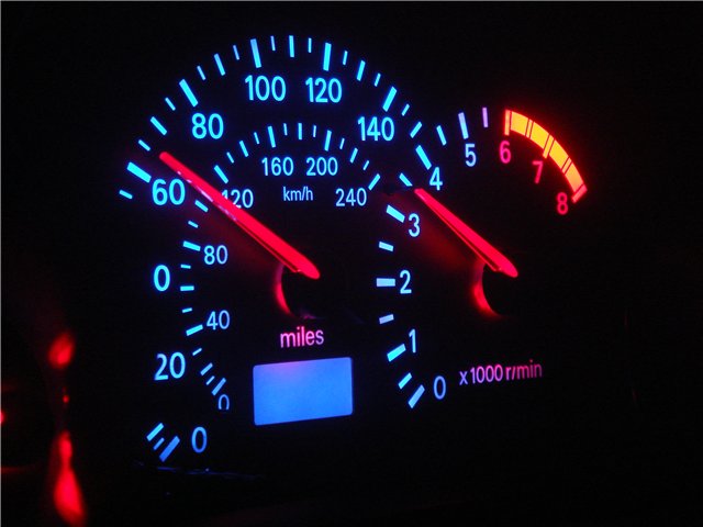 обратите внимание, как особенно на последней фото, красным засвечивает не только стрелки, но и одометр и надписи на табло, в реале это смотрится ноу гуд