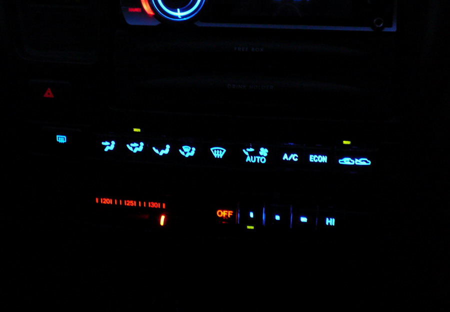 А сложно самому поменять подсветку на панели управления воздухом =) аля климат контроля, хочу все в красном сделать.