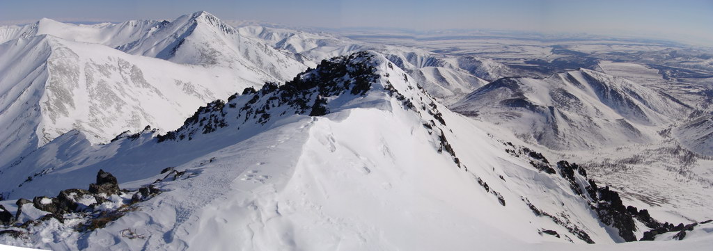 Вот наши, пусть не снегоходные, но все же фотки... разных участков Хасынского хребта, протянувшегося от основной трассы и до реки Ола, где смогли побывать в эти последние недели. Вершины за километр, нетронутые долины, причудливые ледниковые формы рельефа... кра-со-тень!