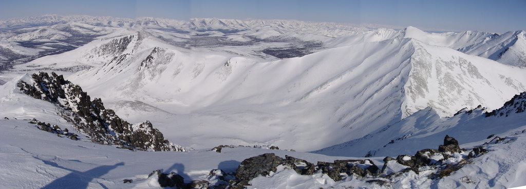 zivНажмите для просмотра прикрепленного файлаВид на вершину 1367м "Пик Танкистов" и долину реки Ола, Клепкинскую тундру и Сердяхские поля с "Пирамиды"