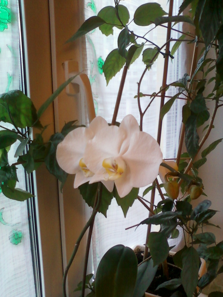 у меня наконец-то зацвела белая орхидейка, сидела больше полугода