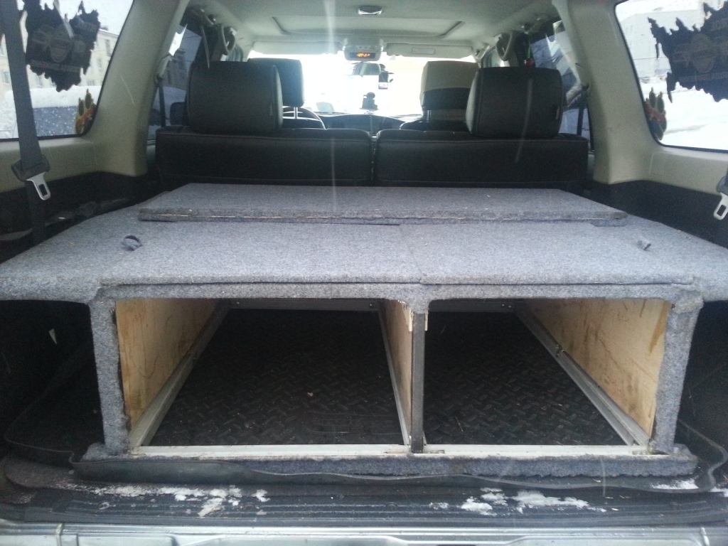 Начал изготовление спальника в Y61, завтра буду устанавливать (пока без выдвижных ящиков, их чуть позже сделаю). Обшиваю карпетом. Фото завтра выложу