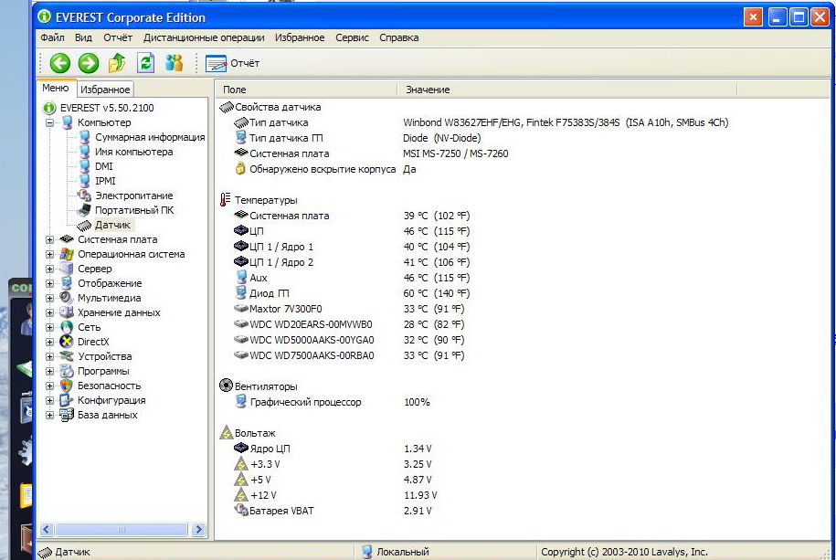 сведения о системе