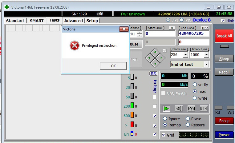 GOLLANDEC, тогда действительно лучше записать образ на флешку/диск и проверять с ее помощью. Но есть момент - внешний хард через usb виктория может не опознать. как я уже говорил выше - вытаскиваем хард из корзины и подключаем к материнке, а потом уже проверяй