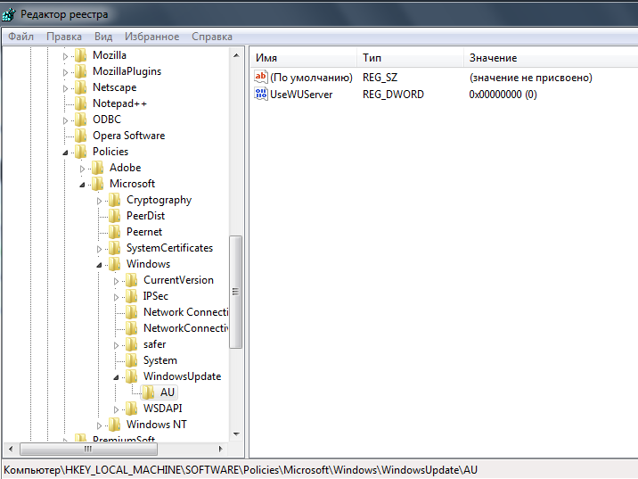 Прошу помочь, у кого Windows 7 и кто не лазил в настройки WSUS, посмотрите пожалуйста по адресу в Реестре