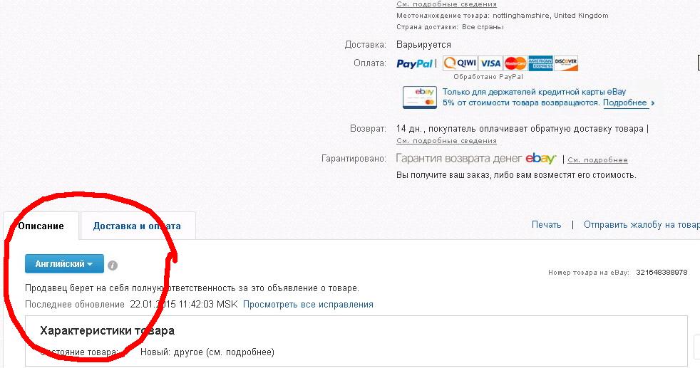 Гидр, да и забей, вверху страницы, справа есть пара надписей: English и My eBay???