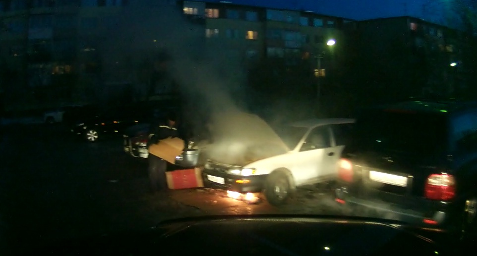 Правда я сперва подумал, что дядька решил машину спалить ... или уже запалил и дровишек подкидывает чтобы не потухла ...