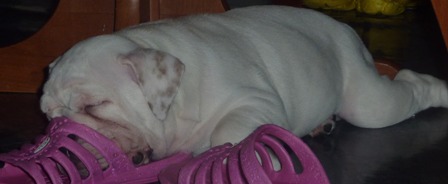 Но это только потому что он толстый маленький свиник. Собаку бы никто не жалел, если бы ее приучали есть в своей миске, а не таскать еду по всему дому