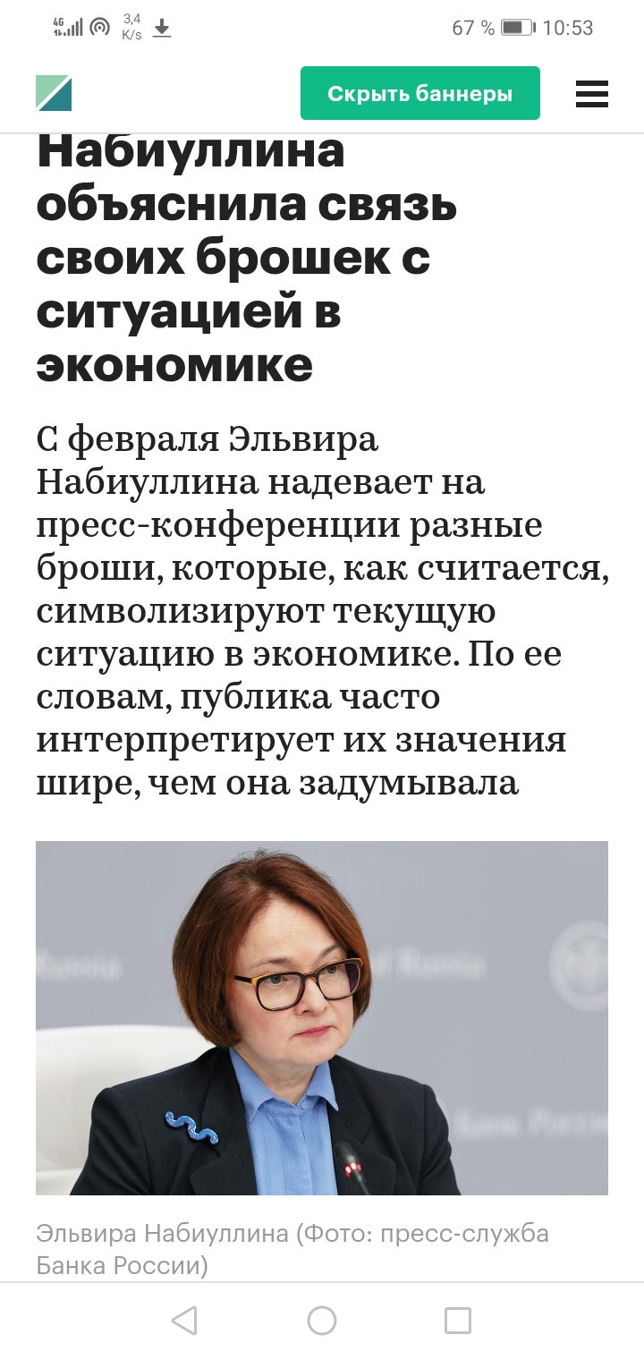 - Госпожа Набиуллина! Правда, что в зависимости от ситуации в экономике страны, Вы под неё подбираете соответствующую брошку?