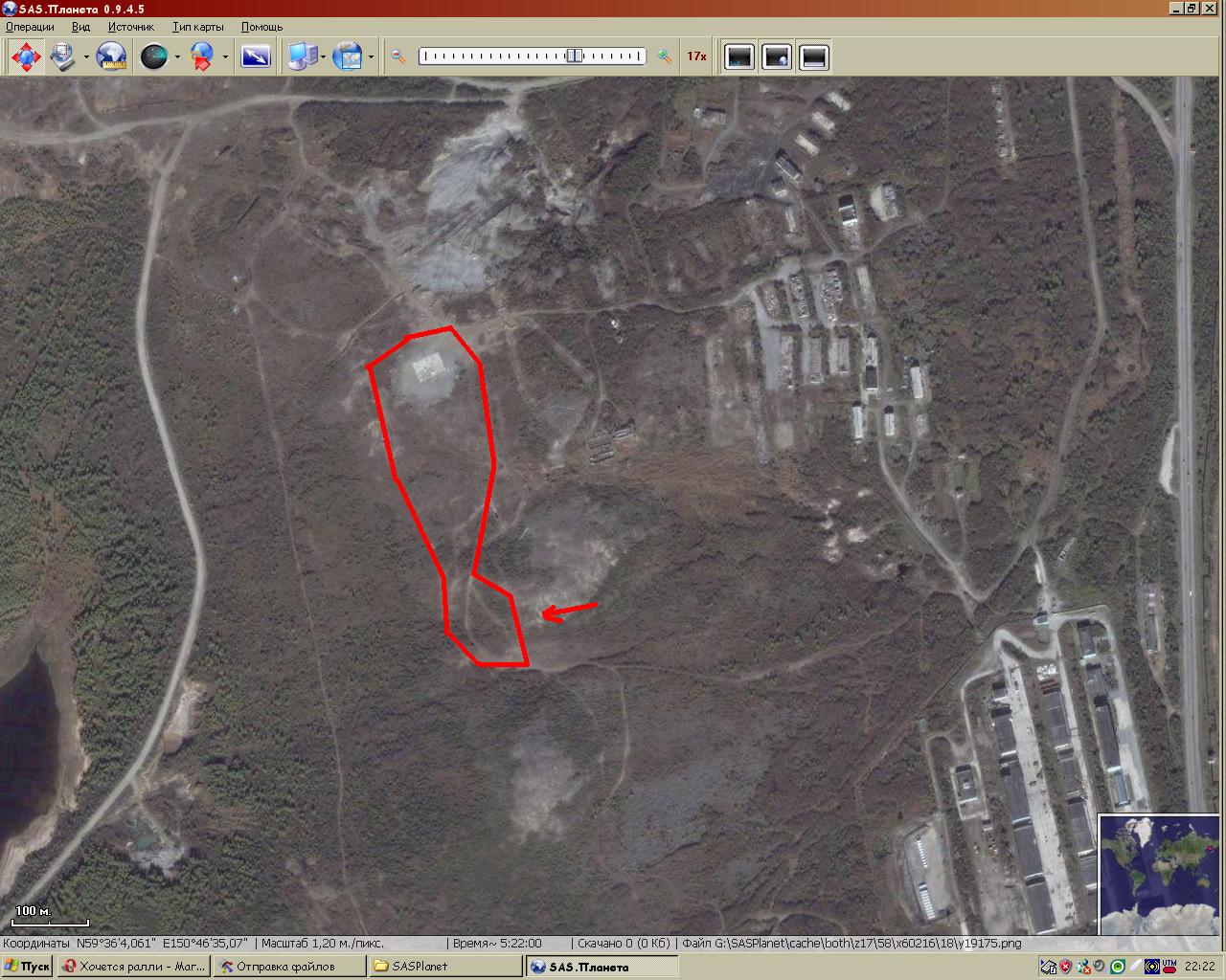 Нажмите для просмотра прикрепленного файласама вертолётка не плохая стоянка для большого количества машин, вокруг неё кустарник не большной, там много всяких извилистых дорог которые когда то были отмечены колёсами но они видать заросли травой и их не так видно, темболее на снимки осень. Вокруг самой вертолётки не очень много снега, выдувает ветром. А вот ниже уже побольше. Где стрелочка там подьём на сопку, метров 10 примерно 30-40 градусов ну или крутой спуск
