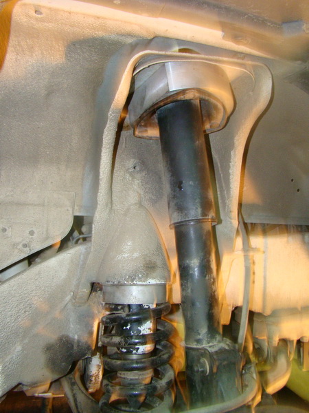 Я начал с передка. Перво – наперво ослабиваем все салейнблоки как с переди, так и с зади (чтобы не забыть) ... откручиваем тягу стабилизатора от ступиц, домкратим и ... снимаем колесо, откручиваем супрта, рулевую, снимает стопорное кольцо с привода.... А теперь... подставляем один домкрат под нижний рычаг (хорошо ставим!!!) и откручиваем гайку с шаровой и два болта со стойки... Аккуратно !!!!! очень аккуратно опускаем домкрат и обновремено вытягиваем гранату привода из ступицы. В самом конце (низу) граната выйдет со шлицов и одновремено выпадет из щаровой нижнего рычага. Опускаем дальше домкратом и пружина выпадает. Всё.