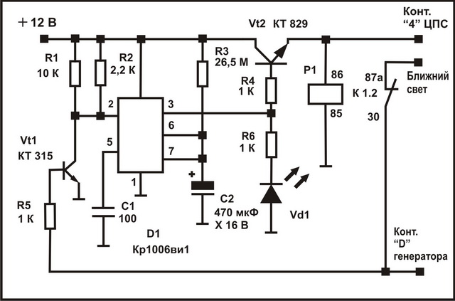 вот несколько схем автоматического включения и соответственно выключения ближнего света фар (как дневных ходовых огней) ...