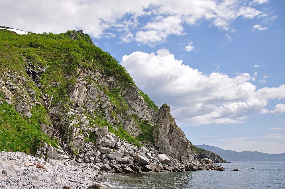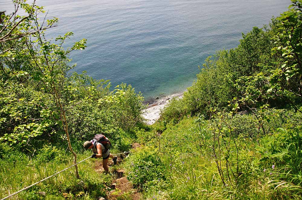 Туда от Холодного ручья шли очень не спеша 3,5 часа, обратно спустились к морю в лисий распадок и по отливу дошли до отсыпки.
