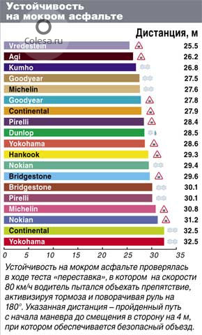 Кроме того, испытатели обязательно проверяют насколько хорошо покрышки сопротивляются аквапланированию, а также ставят "резине" оценки за топливную экономичность, плавность хода и акустический комфорт.