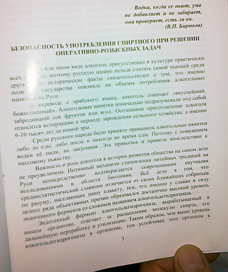 «Водка, когда ее пьют, ума не добавляет и не забирает, она проверяет, есть ли он», – пишет автор генерал-майор милиции Василий Бирюков, начальник Крымского юридического института.