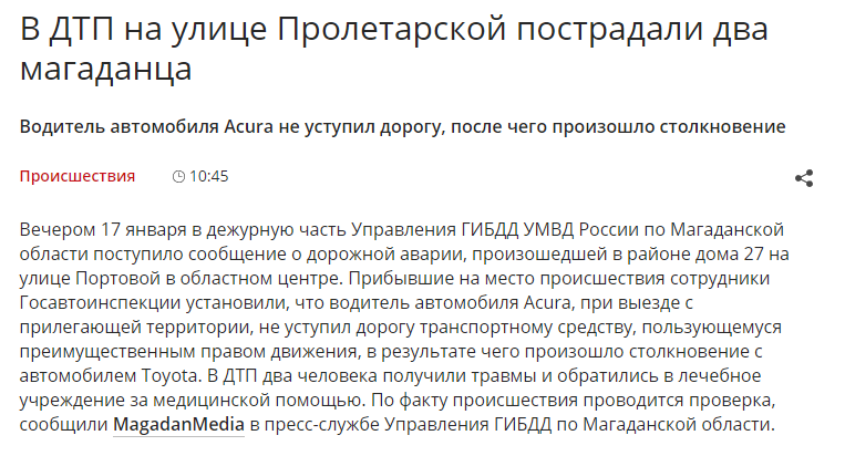 ДТП г. Магадана