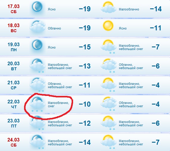 По сведениям Колымского управления по гидрометеорологии : Прогноз погоды на 20 марта 2012 года