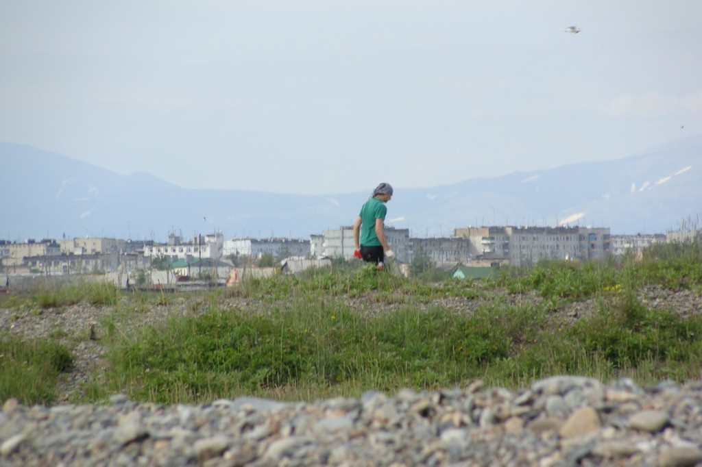 была на мероприятии. Хоть и сперва не планировала принимать участие в уборке, думала поваляться как тюлень. Но передумала. Нас отвезли местные ольские ребята на левый берег Олы, на лицензионный участок "Колымарыбпром". Очень приветливо нас встретила хозяйка - Сабина Стрельченко. Даже куртку дала. Там было более ветренно, чем на популярном пляже, где в основном и гадят. Нас было шестеро, мы отправились вдоль берега с мешками - собирать мусор и пакетами - предлагать отдыхающим и рыбакам убрать за собой мусор (в случае если у них не было своих пакетов), а также мусор, который вокруг них.