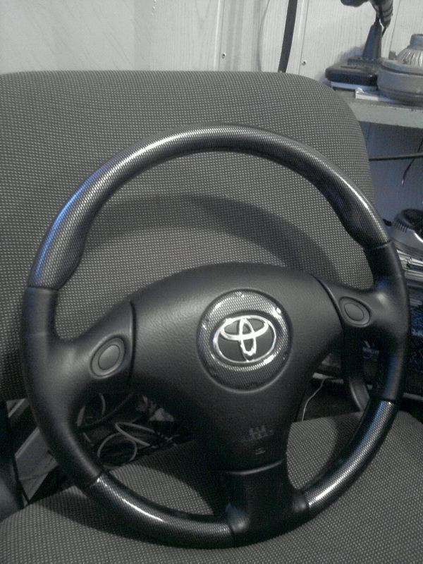 дерево на руле обтянул плёнкой, кнопки покрашу или оставлю такими.