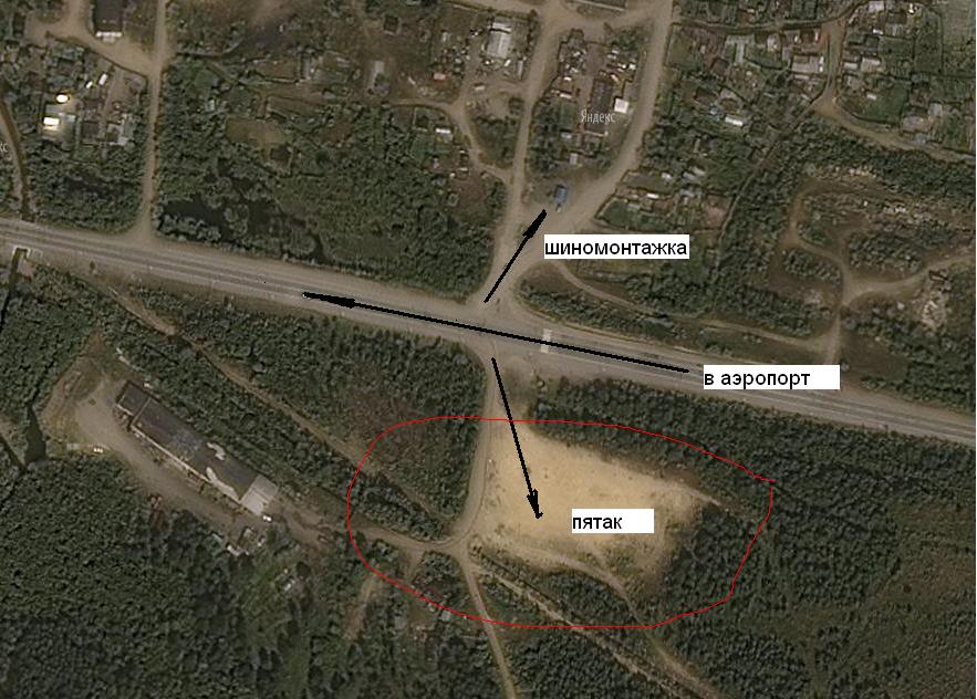 от заправки она идёт к сомту ч/з Магаданку, и вверх к асф. дороге на горняк ... Она не подойдёт, т.к. узка. Нужен "пятачок" - минимум 100 на 80 метров