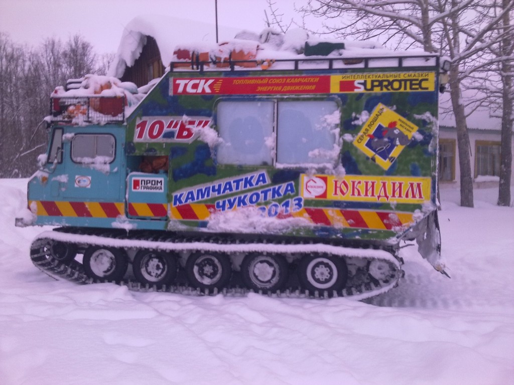 KAMAZ они доехали до Марково с Анадыря самостоятельно, да и весь путь до Анадыря прошли сами, в Марково уже встречали 2 Охары, потому что на Слаутное дорого нет вообще, я лично связывался с отцом, он с главой администрации Тиличиков, так как те на вездеходах к нам мотаются часто, они дали карту камчатцам (+ у них своя была), а именно Олегу (фамилию забыл) с клуба "квадратное колесо" (который в Магадан приезжал). Так что Чукотку они почти всю прошли своим ходом. Информация 100%. Дюйм постоянно поддерживал с ними связь, когда были в Марково отец помогал им чуть-чуть. Вот вездеходы:
