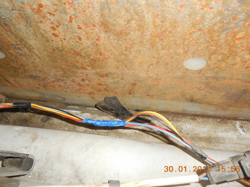 STARGAZER'а вообще нечего добавлять. Но открыв капот, можно позабавить себя видом главного жгута проводов на комп и остальную моторную электрику, расположенного на правом крыле аккурат под текущей дополнительной помпой. Надо ли говорить, что весь этот жгут в тосоле? А посмотрев с ямы, можно увидеть незакреплённый жгут на килородник, к тому же пропущенный под рамой. Сняв приборку, можно увидеть даже, что 4 втыкаемых в неё разъёма абсолютно одинаковы, и их легко можно перепутать.