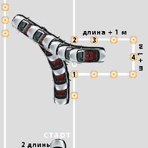 Движение в «габаритном коридоре» задним ходом, остановка перед линией «СТОП».