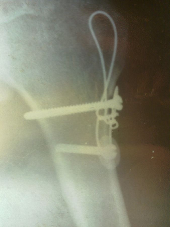 Гидр, не, не шплинт. Вот этой петлёй, которая сверху проволока давила на кусок кости который врачи отрезали от бедра и выточили из него недостающую часть для плечевой кости т.к. родная часть развалилась к чертям свинячим, а болты создавали силу давления. Там на снимке если присмотреться, то видно что кусочек большого бугра как бы не родной, типа приклееный. Короче объяснил как мог. Вот такие чудеса творят наши травматологи В.П. Лучинин и М.В. Гордин. Большое им спасибо, доктора от Бога.