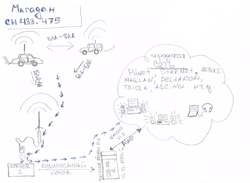 пока все работает в стадии тестирования. Антенна стоит в центре)))) И естественно если ты будешь в зоне уверенного приема для этой антенны, то и в онлайн-трансляции тебя будет слышно хорошо.