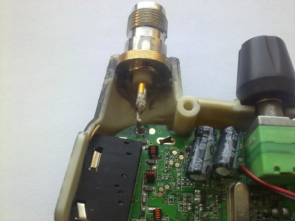 Корпус разъёма необходимо соединить с "ЗЕМЛЕЙ" р/ст. ( Земля - Золотистый кружок справа от места пайки основной жилы )
