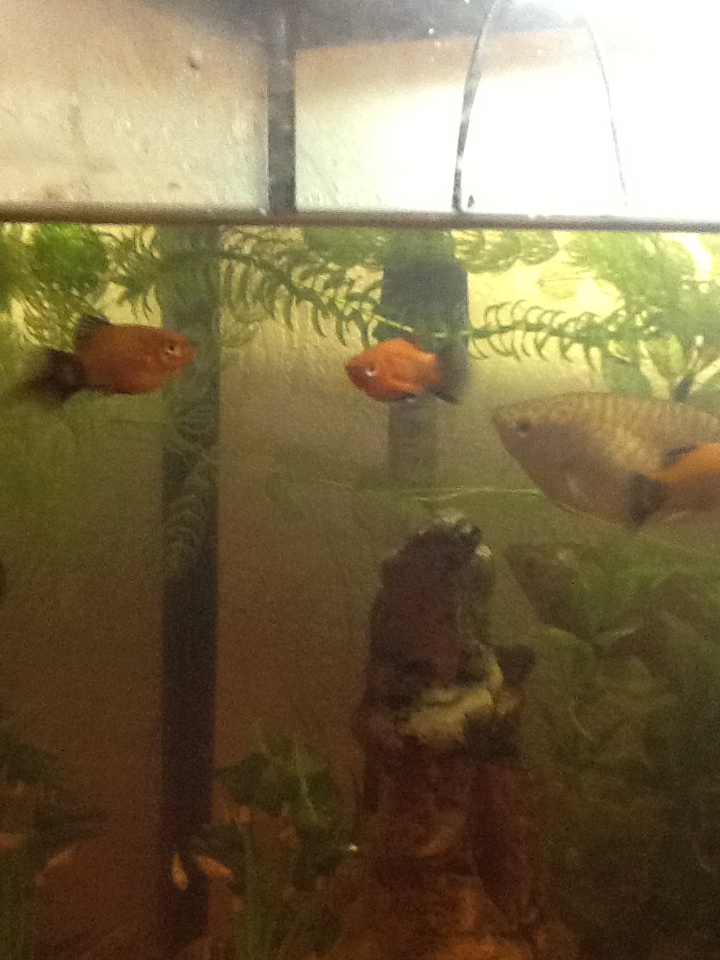 Самку гуппи могу тебе отдать. Она у меня одна и не то не сё, самцов всё равно забивают попугаи.