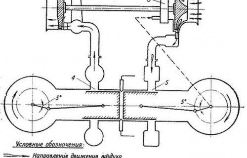Двигатель работал по двухтактному циклу, и поршни играли роль золотников, открывавших впускные и выпускные окна: то есть никаких клапанов и распредвалов у него не было. Конструкция была гениальной и эффективной – двухтактный цикл обеспечивал максимальную литровую мощность, а прямоточная продувка — высокое качество наполнения цилиндров.
