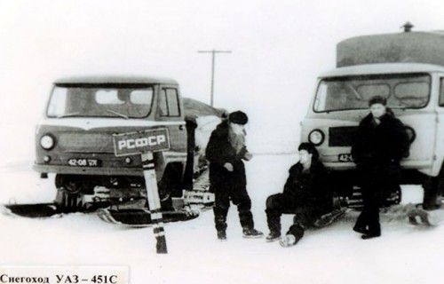 Одна из самых ранних экспериментальных моделей Ульяновского автозавода — УАЗ-451С, полугусеничный снегоход, разработанный на базе «прадедушки»знаменитой современной «буханки» — заднеприводного УАЗ-451. Для того, чтобы автомобиль мог проезжать не только по дорогам, но и по заснеженной местности, его оснастили резинометаллическими гусеницами.