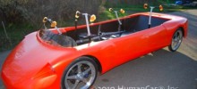 По принципу своей работы HumanCar напоминает заводную игрушку: несколько движений рычагами и автомобиль готов тронуться с места. Он вмещает четырех пассажиров, каждый из которых прилагает физическую силу для разгона. На случай, если число людей окажется меньше, транспортное средство оборудовано электрическими аккумуляторами. При подъеме в гору HumanCar способен развивать скорость до 50 км/ч, а на равнине он может двигаться вдвое быстрее.