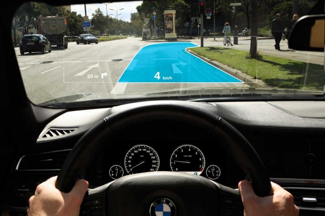 В 2004 году BMW Group первым из производителей автомобилей начала разработку Head-Up Display (HUD) — системы дополненной реальности для водителей. В начале 2011 года было опробовано использование полноцветной графики. Сейчас исследователи и разработчики BMW работают над новой вехой в этой технологии: накладывание виртуальной «маркировки» на реальные объекты внешней среды, таким образом, чтобы навигационная информация или информации из систем автомобиля отображалась в соответствии с объектами на дороге. Навигационные инструкции могут отображаться прямо на дороге, и транспортных средствах, или безопасность/опасность соответствующих объектов может быть выделена и отмечена в контексте.