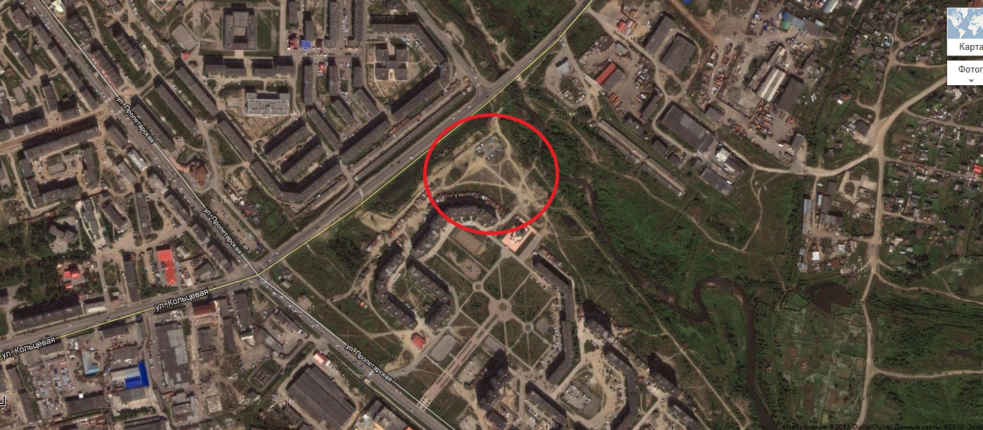вот этот пустырь (в красном кружочке) -