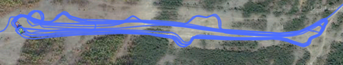 Круг я увеличил за счет соседней поляны. По счетчику получилось три круга с джокером (дополнительной петлей - в количестве 1 штука) - 7.7 километра, чисто круг - около двух км. По времени не засекал, хотел снять видео, но одной рукой херово управлять