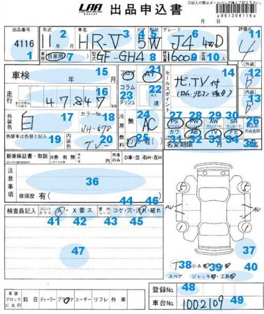Расшифровка аукционного листа HAA Аукционная площадка HAA Kobe (Hyogo Automobile Auction)