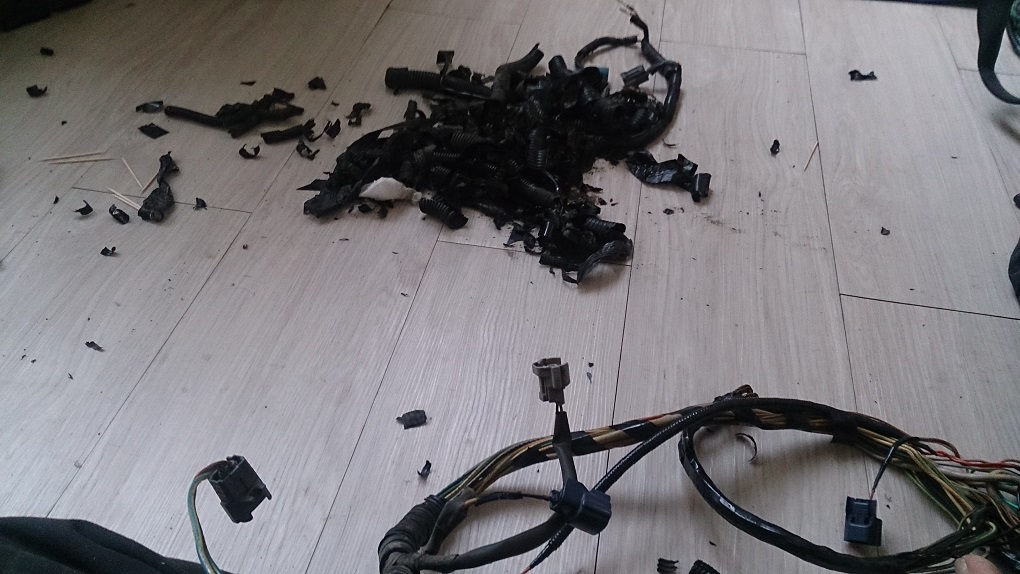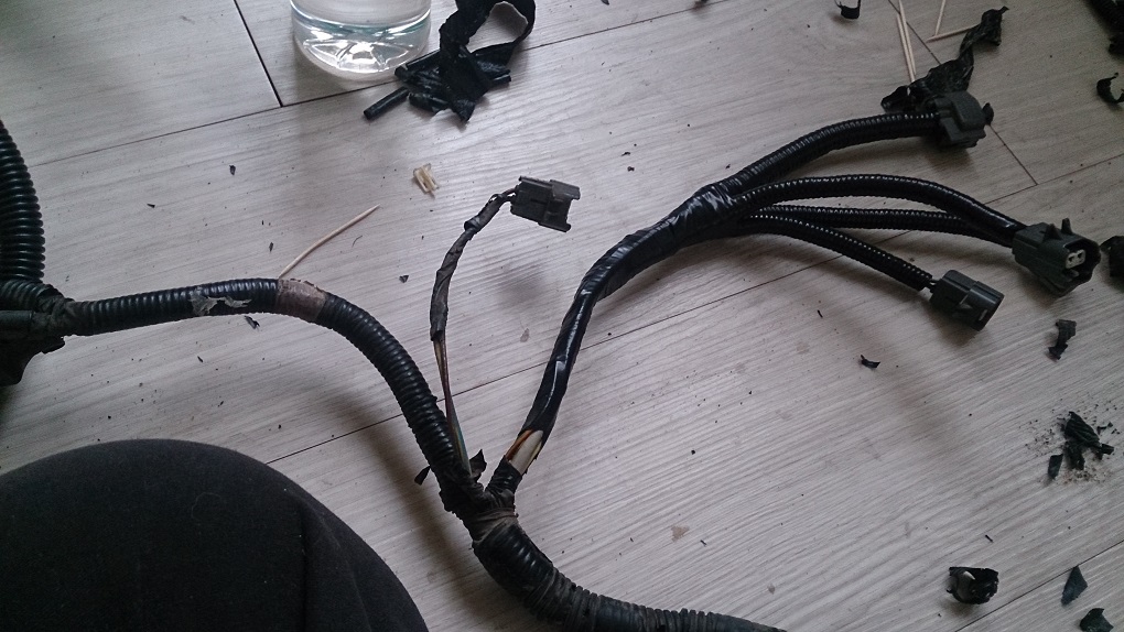 Всё стандартно - сломанные фиксаторы на парочке фишек и повреждения изоляции возле разьемов.