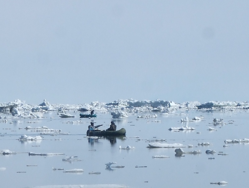 9.05 : Переправились в 8-00 без проблем. Лед на Балаганном отличный ( целый, без воды ), правда промыты выезды, но нашли непромытые участки. На Нахтаче как будто-бы и не май месяц ( если на лёд был съезд можно и на машине ). В 10-00 на Нахтаче и Уссуле забросили удочки, сразу поймали по 3 штуки, ну думали Всё, оказалось и правда всё - до 14-00 ничего. Людей никого, но потом пришло 2 человека. В общем рыбы не было 7,8,9 . Тауй и Яна открыты почти полностью ( длинные удочки мы не брали ), вода очень мутная и относительно не большая . Поехали на 0 - олений , но при съезде в пойму реки большой перемёт, а речка где-то далеко. Поехали на 1-олений, постояли на обрыве, со слов находившихся там рыбаков до реки далеко, они поймали 3 мальмы и собирались домой. Дорога до 1- оленего сухая. В 22-00 были дома.