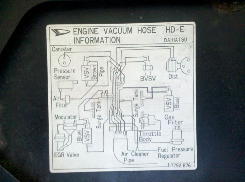 Хотя знаете ребята, чем больше я смотрю на эту табличку, тем меньше она мне нравится. Как-то там всё очень странно: и датчик давления включён через какой-то э/вакуумный клапан, и термовакуумник BVSV хрен пойми что делает, и доп.камера трамблёра внезапно завязана на э/вак. клапан управления EGR... очень всё это печально и мне лично пока непонятно.