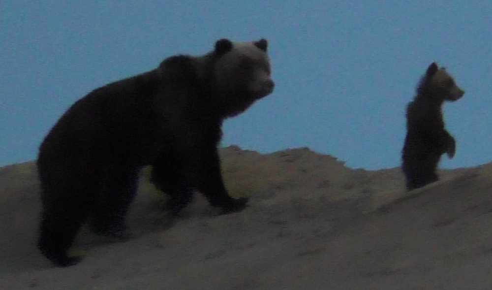 На отвалах ещё и мишки бродят. (фотографировал после 23 часов, очень издалека)