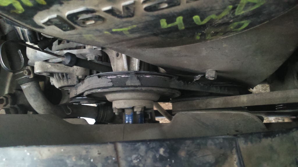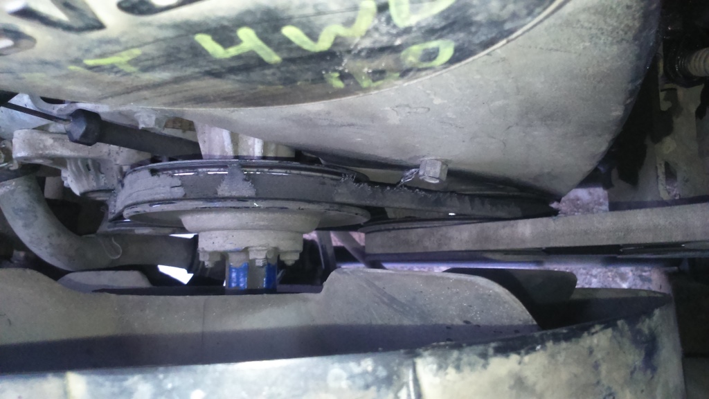 По поводу раздатки и 4вд в целом. Был удар в правое колесо, или куда то заехали. Потому, что я в багажнике нашел смятый колпак с этого колеса, который закрывает авто хаб. Хаб видимо вышел из строя, его открутили и выкинули. Колесо, которое раньше было передним правым, сейчас висит вместо запаски. Порвано в труху. Аж проволока наружу.