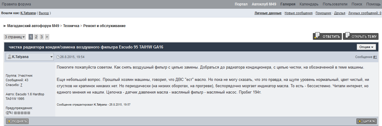Ремни я уже купил. Купил автохаб которого нехватает, колодки на перед. Сегодня поеду менять. Потом отпишусь. На зад, я заказал все полностью новое suzuki и to.... не помню как пишется. Начиная с болтов и гаек, заканчивая газовыми амортами. В след месядце выкуплю, в этом месяце, уже увы и ах. Все расходы расписаны.