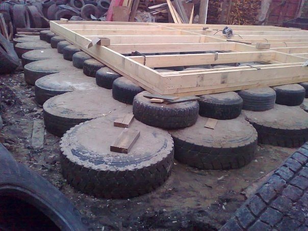 Снижение затрат на сооружение основания дома: ведь основной строительный материал – покрышки – можно попросту собрать у знакомых.